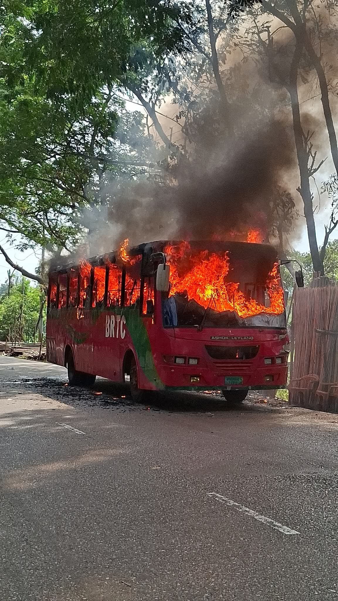 বরিশাল হাইওয়ে পুলিশের ওসি আমিনুর রহমান জানিয়েছেন, বরিশাল থেকে খুলনার উদ্দেশ্যে ছেড়ে আসা বিআরটিসি বাসটিতে ৩০ জন যাত্রী ছিলেন। সবাই অক্ষত থাকলেও মালামাল পুড়ে গেছে। সড়কে ২০ মিনিটের মতো যান চলাচল বন্ধ থাকার পর তা স্বাভাবিক করা হয়।