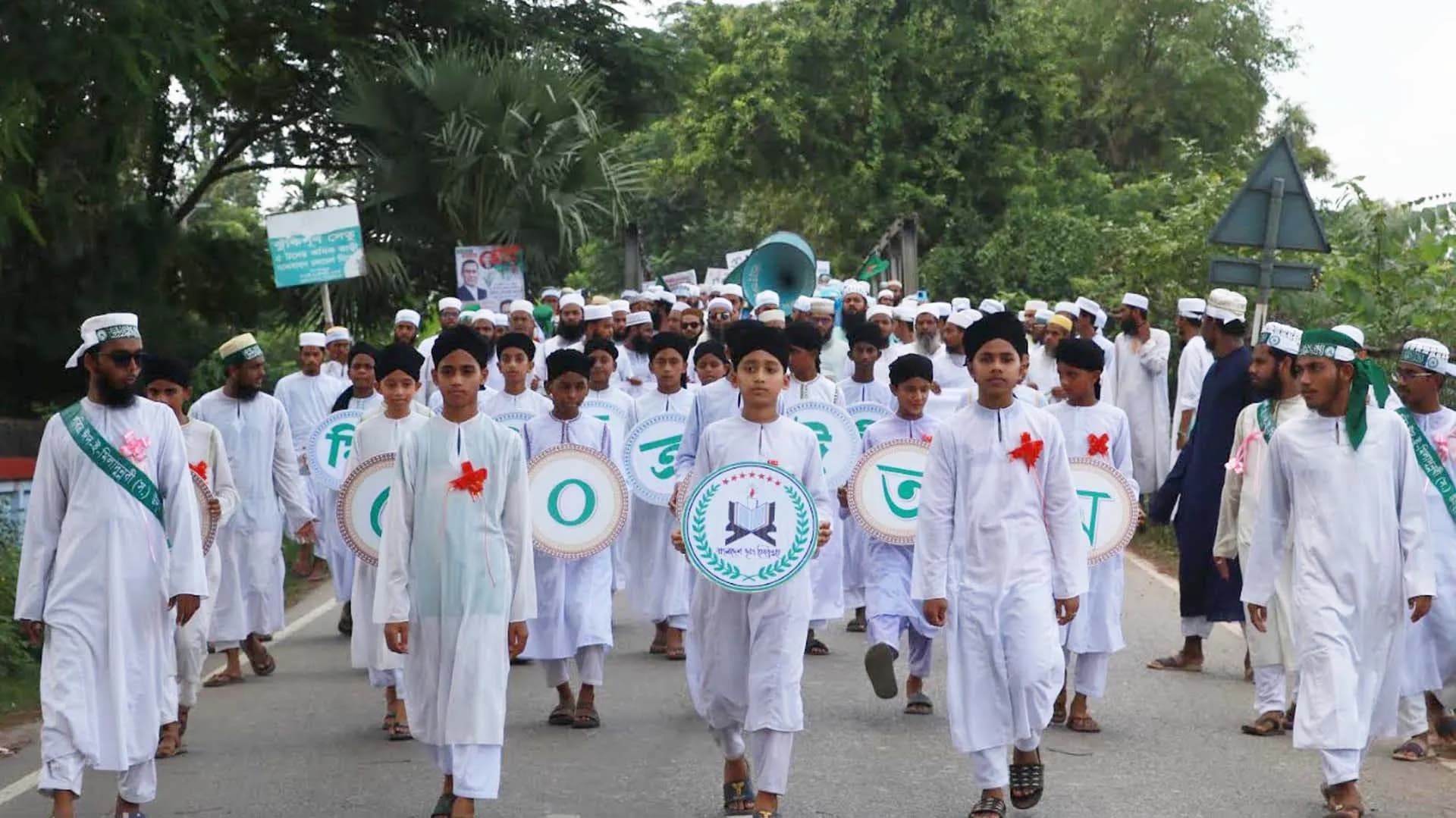 এসময় অংশগ্রহণকারীরা বিভিন্ন না’ত, ক্বাসিদা ও স্লোগানে আকাশ-বাতাস মুখরিত করে তোলে। আনন্দ মিছিলে বিভিন্ন ভাষার ব্যানার ও ফেস্টুন প্রদর্শনের মাধ্যমে সৌন্দর্যমন্ডিত করা হয়।