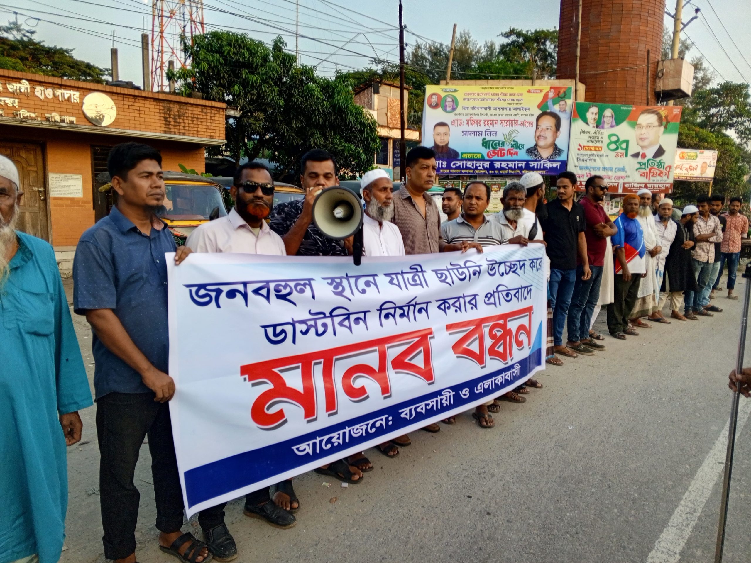 বরিশাল সিটি কর্পোরেশনের ৩০ নম্বর ওয়ার্ডের গড়িয়ারপাড় বাজার এলাকায় যাত্রী ছাউনি উচ্ছেদ করে সেখানে ডাস্টবিন নির্মাণের উদ্যোগের প্রতিবাদে মানববন্ধন অনুষ্ঠিত হয়েছে। শুক্রবার (৩ নভেম্বর) বিকেলে স্থানীয় ব্যবসায়ী, রাজনৈতিক নেতৃবৃন্দ ও সাধারণ বাসিন্দাদের অংশগ্রহণে বাজার এলাকায় এ মানববন্ধন অনুষ্ঠিত হয়।