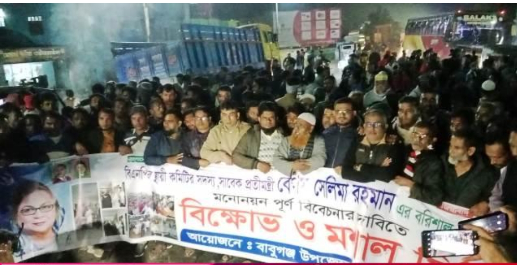 সোমবার (১৫ ডিসেম্বর) সন্ধ্যায় বাবুগঞ্জ উপজেলার রহমতপুর ইউনিয়নের ঢাকা–বরিশাল মহাসড়কে স্থানীয় বিএনপি নেতাকর্মী ও সাধারণ জনগণের উদ্যোগে এক বিক্ষোভ মশাল মিছিল অনুষ্ঠিত হয়।